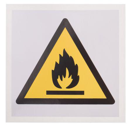 This is Flammable Sign with Pictogram Only Vinyl 100 x 100mm Hazard Warning manufactured by RS Pro. The manufacturer part number is KL 0038. Its text message shows flammable material sign . The product is available in self adhesive configuration. It has a decent black/yellow/white colour. The product is made from highly stable and reliable vinyl. In addition, the height is 100 mm. Furthermore, the product is 100mm wide. However, its text language is none . In addition, it displays flammable sign description .
