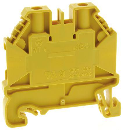 This is Feed Through Terminal Block WT 4 Series 1 kV 32A Screw Termination Yellow Single Level manufactured by Wieland. The manufacturer part number is 58.504.0055.8 - WT 4 GE. The product carries single levels. The product has a current rating of 32a. Moreover, the product has a nominal 1 kv voltage rating. The product wt 4, is a highly preferred choice for users. It has a decent yellow colour. It allows screw termination method. Concerning wire's size, it is 26 → 10 awg.