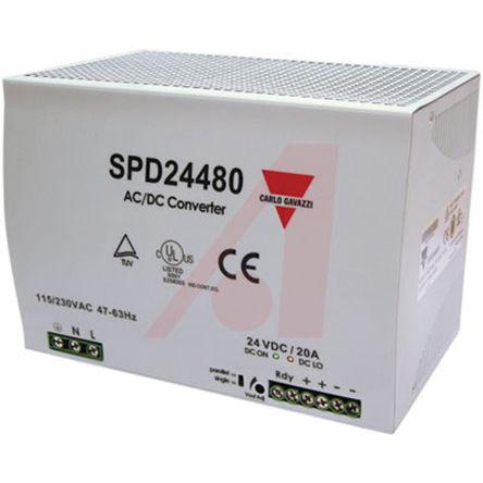 This is 480W Switch Mode DIN Rail Power Supply 24V dc/ 20A manufactured by Carlo Gavazzi. The manufacturer part number is SPD244801B. The product has 71°c maximum temperature. It has a/an dc output voltage . The given dimensions of the product include 175.5 x 175.5 x 123.6mm. While its minimum temperature is -40°c. It has ac input voltage. Furthermore, the product is 175.5mm wide. The MTBF values include 403000h. Its output voltage (maximum) includes 24v dc. Its electrical phase configuration includes 1. It comes in switch mode configuration. Load Regulation - ±5%. It is a highly efficient product with an 89% of high efficiency. Additionally, the product is supplied with 1 outputs. Has a line regulation of ±0.5%. Carries 100mv pk-pk ripple and noise. The product comes in 123.6mm depth. The product features 24v dc minimum output voltage. The typical product's weight is 1920g. It carries 20 a output current. Features a 24 v dc output voltage. Feature 480w of power rating. 264v ac is the maximum voltage of the bespoke product. The product has 90v ac of minimum input voltage.