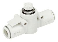 This is AS series Speed Controller 1/4in Tube Inlet Port x 1/4in Tube Outlet Port manufactured by SMC. The manufacturer part number is AS3002F-07-J. It has a maximum 1(outlet) mpa, 1.5(proof) mpa outlet pressure . Moreover, it has a standard tube outlet port about 1/4in . It comes in exhaust configuration. The product has a minimum 0.1mpa outlet pressure . It has a tube type inlet port . It has about 1/4in tube inlet port . The product has a as manufacturer series. It is designed with a tube type outlet port .