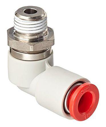 This is Rotary Adapter R 1/2 Male Push In 10 mm manufactured by SMC. The manufacturer part number is KXL10-04S. It contains a standard threaded connection of male gender . It has a 90° angle . Furthermore, it has a threaded connection of r thread standard . The connector A is r 1/2 male connector. It has a standard 10mm size tube connection . It has a push in type tube connection A . Its connector is of r thread standard . It features 1 mpa, 3 (proof) mpa maximum operating pressure. Moreover, it has a standard tube size about 10mm of tube connection A . The product has a threaded-to-tube style. Its connector is of male gender . Additionally, the connector A is of 1/2 thread size . It has a maximum operating temperature of +60°c. Moreover, its thread is made up of nickel plated brass material . The threaded connection is r 1/2 male. The product has a kxl manufacturer series. It has a standard threaded connection of 1/2 thread size . It has typical push in 10 mm tube connection . It is offered with a push in type tube connection . The product's body is nicely designed from pbt materials. Moreover, it has a standard push in 10 mm tube connection A . Whereas, the minimum operating temperature of the product is -5°c.