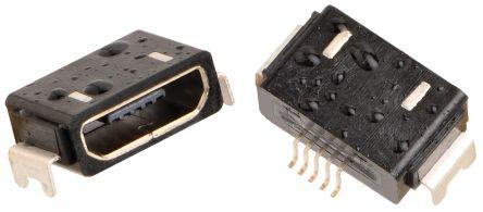 This is 105443 Series Number Right Angle SMT Type B Micro USB Connector Receptacle manufactured by Molex. The manufacturer part number is 105443-1101. The product has a current rating of 1 a, 1.8 a. The product is available in surface mount configuration. Moreover, the product has a nominal 30 v voltage rating. In addition, female is the available "Gender" of the product. It contains a/an b type USB . Whereas, the minimum operating temperature of the product is -30°c. It allows quick connect termination method. The product is made from sturdy copper alloy materials. It has a maximum operating temperature of +85°c. It has right angle body orientation. It carries [Serial Number] serial number.