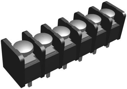 This is Barrier Strip 6 Contact 8.26mm Pitch 1 Row 20A 150 V manufactured by TE Connectivity. The manufacturer part number is 1-1437667-2. The product contains 6 contacts. The product has a current rating of 20a. Moreover, the product has a nominal 150 v voltage rating. It has vertical body orientation. The product is made from highly stable and reliable nylon. It comes in 1 of rows. It is available in screw size of unc 6-32. The high-quality tin is used as contact plating material. Moreover, the product is 8.26mm. Concerning wire's size, it is 22 → 12 awg. The product is made from sturdy copper alloy materials. Its typical moisture sensitivity level is vendor undefined. It is assigned with possible HTSUS value of 8536.69.4040. It is shipped in box package . The product is rohs non-compliant. In addition, it is reach info available upon request. The product is designated with the ear99 code number.