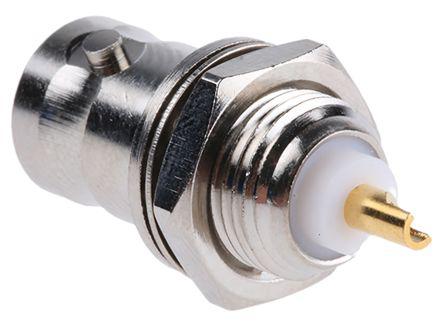 This is Straight 50Ω Panel Mount BNC Connector jack Solder Termination manufactured by Sofim. The manufacturer part number is 60 009. While providing normal polarity. The product is available in panel mount configuration. In addition, female is the available "Gender" of the product. It has straight body orientation. It has a bulkhead yes . It allows solder termination method. It has an impedance value of 50ω.