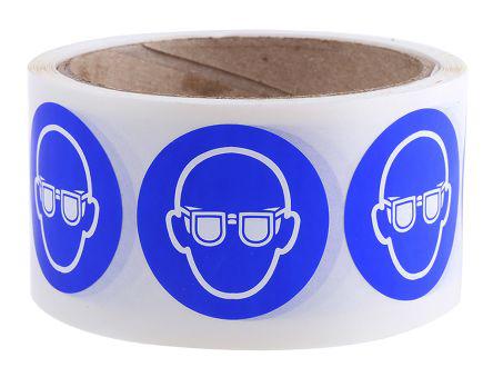 This is Eye Protection Sign with Pictogram Only Vinyl 250Per Roll Hazard Warning manufactured by Signs & Labels. The manufacturer part number is LR07/S. Its diameter is 40mm. The product is available in self adhesive configuration. It has a decent blue/white colour. The product is made from highly stable and reliable vinyl. It contains 250per roll item per package . However, its text language is none . In addition, it displays eye protection sign description .
