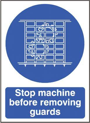 This is Vinyl Mandatory Site Safety Sign with English Text 210 x 148mm manufactured by Signs & Labels. The manufacturer part number is MA05451S. Its text message shows stop machine guards . It has a decent white colour. The product is made from highly stable and reliable vinyl. In addition, the height is 148 mm. Furthermore, the product is 210mm wide. However, its text language is english . In addition, it displays site safety sign description .