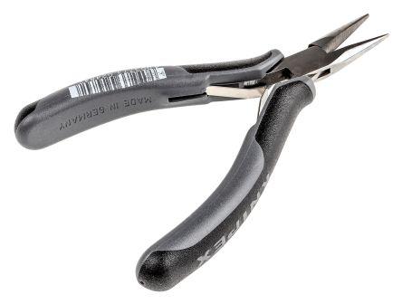 This is 115 mm Tool Steel Round Nose Pliers manufactured by Knipex. The manufacturer part number is 1877378. Its typical cutting capacity is 9.5 mm . The product is made from highly stable and reliable tool steel. It has an overall length of 115 mm. ESD Safety - yes.
