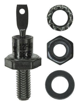 This is Thread Mount Diode Stud Cathode 400V 12A 2-Pin DO-203AA manufactured by Vishay. The manufacturer part number is VS-12F40. Its diameter is 11mm. The given dimensions of the product include 11 x 31.8mm. The product is available in thread mount configuration. Moreover, a bespoke product has 280a peak non-repetitive forward surge current. It has a maximum operating temperature of +175 °c. Furthermore, its maximum continuous forward current constitutes 12a. Its accurate length is 31.8mm. The package is a sort of do-203aa. It consists of 1 elements per chip. Whereas, the minimum operating temperature of the product is -65 °c. It is designed with a silicon junction diode. The diode features a stud cathode configuration. It contains 2 pins. While having the peak reverse repetitive 400v.