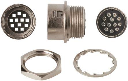 This is HR10 Series 12 Pole Panel Mount Micro Connector Socket with Male Contacts manufactured by Hirose. The manufacturer part number is HR10G-10R-12PC(71). The product has a current rating of 2a. It is a type of push-pull mating. The product is available in panel mount configuration. Moreover, the product has a nominal 100 v ac voltage rating. The product hr10, is a highly preferred choice for users. It has straight body orientation. It allows crimp termination method. This male contact is widely suited for specific applications. The product also features robust brass, zinc alloy housing material. It comprises a socket. The connector has micro size. The shell has 10mm size. The product contains 12 contacts.