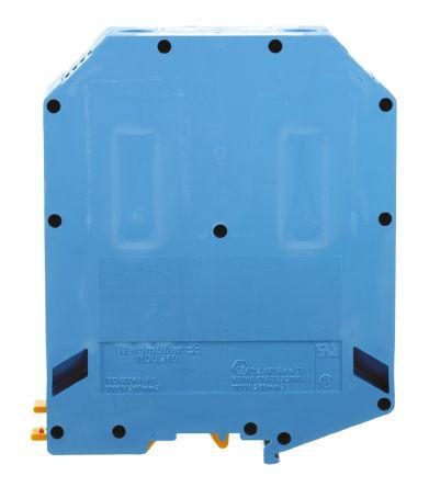 This is Feed Through Terminal Block W Series 70 → 240mm² 1000 V 415A Screw Termination Blue manufactured by Weidmuller. The manufacturer part number is WDU 240 BL -1822210000. The product carries single levels. The product has a current rating of 415a. Moreover, the product has a nominal 1000 v voltage rating. The product w, is a highly preferred choice for users. It has a decent blue colour. Whereas, the minimum operating temperature of the product is -50°c. It allows screw termination method. The cross section area of the cable includes 70 → 240mm². Concerning wire's size, it is 70 → 240 mm². It has a maximum operating temperature of +120°c.