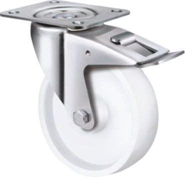 This is Swivel Castor 150kg manufactured by Flexello. The manufacturer part number is IBNY10010030. The tyre of the product is made up of pur material . Moreover, its fixing plate dimensions are 105 x 85mm . The splendid features of the product include non-corrosive. Additionally, it includes 4 fixing holes . It includes brake yes . It has a typical 80 x 60mm fixing centres . Moreover, it has 128mm of overall height. It can holds up to 150kg load capacity. With a 60mm fixing centers width . It has a fixing centres length about 80mm . Applications Information involves industrial. It has a standard 85mm fixing plate width . It has a wheel about 32mm in width . Its wheel diameter is about 100mm . Allows swivel rotation. Moreover, it has a 105mm length of fixing plate .
