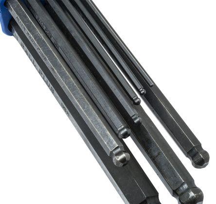 This is L Shape Hex Key Set 9 pieces Black Oxide Alloy Steel manufactured by Allen. The manufacturer part number is 56194. It is a l product with unique specifications. The product is made from highly stable and reliable black oxide alloy steel. Moreover, it has 1.5; 2; 2.5; 3; 4; 5; 6; 8; 10 mm set contents . The product consists of 9 pieces.