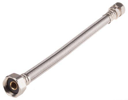 This is 300mm Long Braided Stainless Steel Hose manufactured by RS Pro. The manufacturer part number is 784-5106. Moreover, it has a 15 mm compression connection 1 . It has a standard 3/4 in bsp female connection 2 . Its accurate length is 300mm. With a 3/4in connection size 2 . It has about 15mm connection size 1 . Furthermore, it is suitable for sanitary installation applications .