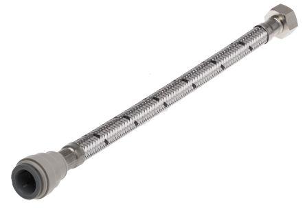 This is 300mm Long Braided Stainless Steel Hose manufactured by RS Pro. The manufacturer part number is 784-5295. Moreover, it has a 15 mm push fit connection 1 . It has a standard 1/2 in bsp female connection 2 . Its accurate length is 300mm. With a 1/2in connection size 2 . It has about 15mm connection size 1 . Furthermore, it is suitable for sanitary installation applications .
