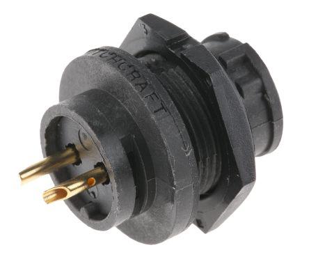 This is EN3 Series 2 Pole Panel Mount Connector with Male Contacts manufactured by Switchcraft. The manufacturer part number is EN3P2M-RS. The product has a current rating of 7.5a. The product is available in panel mount configuration. Moreover, the product has a nominal 600 v ac voltage rating. The product en3, is a highly preferred choice for users. It has straight body orientation. This male contact is widely suited for specific applications. It comprises a plug. It allows solder termination method. The product contains 2 contacts.