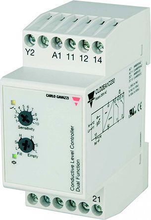 This is DIN Rail Mounting Level Sensor -20°C to +50°C manufactured by Carlo Gavazzi. The manufacturer part number is CLD2ET1C115. It also carries 5 a maximum current. The product is available in din rail configuration. It has a high-quality dpdt relay output switch . This conductive device is highly durable product with a variety of applications. The product's body is nicely designed from noryl se1 materials. Whereas, the minimum operating temperature of the product is -20°c. It has a maximum operating temperature of +50°c. Furthermore, the cable has a 100m of length.