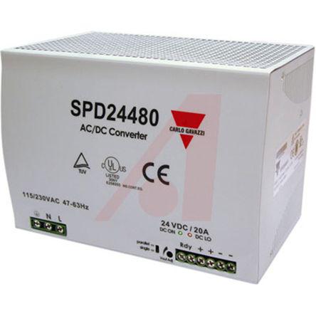 This is 480W Switch Mode DIN Rail Power Supply 48V dc/ 10A manufactured by Carlo Gavazzi. The manufacturer part number is SPD484801B. The product has 71°c maximum temperature. It has a/an dc output voltage . The given dimensions of the product include 175.5 x 175.5 x 123.6mm. While its minimum temperature is -40°c. It has ac input voltage. Furthermore, the product is 175.5mm wide. The MTBF values include 416000h. Its output voltage (maximum) includes 48v dc. Its electrical phase configuration includes 1. It comes in switch mode configuration. Load Regulation - ±5%. It is a highly efficient product with an 90% of high efficiency. Additionally, the product is supplied with 1 outputs. Has a line regulation of ±0.5%. Carries 100mv pk-pk ripple and noise. The product comes in 123.6mm depth. The product features 48v dc minimum output voltage. The typical product's weight is 1920g. It carries 10 a output current. Features a 48 v dc output voltage. Feature 480w of power rating. 264v ac is the maximum voltage of the bespoke product. The product has 90v ac of minimum input voltage.