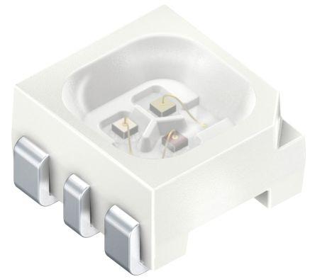 This is Osram Opto 3 RGB LED 472.5 nm 541.5 nm 629 nm PLCC Diffused Rectangle Lens SMD package manufactured by OSRAM Opto Semiconductors. The manufacturer part number is LRTB G6SG. The lens has an adorable clear colour. It has a dominant wavelength of 472.5 nm, 541.5 nm, 629 nm. The given dimensions of the product include 3.5 x 3.2 x 1.85mm. The product is available in surface mount configuration. It features 50 (blue) ma, 50 (green) ma, 70 (red) ma forward current. Whereas, its lens finish is diffused . Furthermore, 120 ° is the viewing angle of the product. It is comprised of 6 pins. The forward voltage is 2.4 v, 3.7 v. It has 180 → 500 mcd, 502 → 1400 mcd, 900 → 2500 mcd of luminous intensity. The package is a sort of plcc. Additionally, it has a/an thingan LED material . It consists of 3 LEDs. The LED has a classic blue, green, red colours. This integrated adorable lens is [Lense Shape] shaped lens with exquisite design.