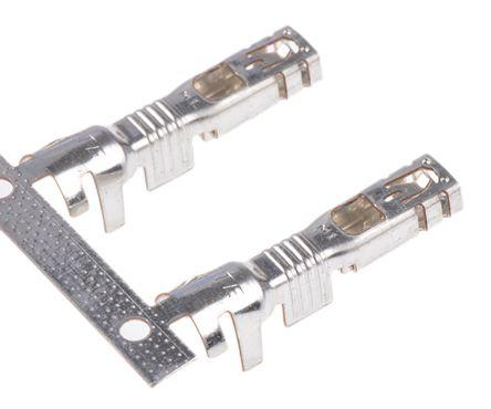This is Power Triple Lock Crimp Terminal Contact Female to 2mm² to 14AWG Tin Plating manufactured by TE Connectivity. The manufacturer part number is 1971781-1. The wire has a maximum size of 2mm². Whereas, the minimum operating temperature of the product is -55°c. In addition, female is the available "Gender" of the product. It allows crimp termination method. The high-quality tin is used as contact plating material. The product power triple lock, is a highly preferred choice for users. The product is highly suitable for power triple lock connector housing. Its maximum wires size includes 14awg. It has a maximum operating temperature of +105°c. The product is made from sturdy copper alloy materials.