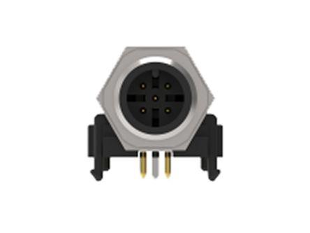 This is M12 Series 5 Pole PCB Mount Circular Connector Plug with Male Contacts IP68 manufactured by TE Connectivity. The manufacturer part number is 4-2172081-2. The product has a current rating of 4a. It is a type of bayonet mating. The product is available in pcb mount configuration. It is IP rated with ip68. The product m12, is a highly preferred choice for users. It has right angle body orientation. Moreover, the product has a nominal 125 v voltage rating. This male contact is widely suited for specific applications. The product also features robust copper zinc alloy housing material. It comprises a plug. The connector has standard size. It allows solder termination method. The product contains 5 contacts.