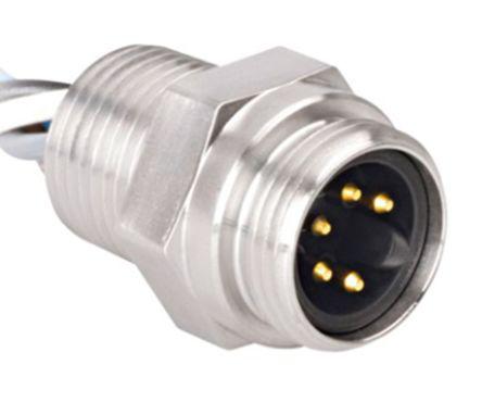 This is P-RSFV Series 5 Pole Panel Mount Connector Socket IP67 Male Contacts Threaded Mating manufactured by Turck. The manufacturer part number is P-RSFV 56 EX-0.3/14.5/NPT. The product has a current rating of 9a. It is a type of threaded mating. The product is available in panel mount configuration. It is IP rated with ip67. Whereas, the minimum operating temperature of the product is -55°c. In addition, female is the available "Gender" of the product. It has straight body orientation. Moreover, the product has a nominal 600 v voltage rating. This male contact is widely suited for specific applications. It allows solder termination method. The product also features robust stainless steel housing material. The high-quality gold is used as contact plating material. The product p-rsfv, is a highly preferred choice for users. The product contains 5 contacts. It has a maximum operating temperature of +105°c. The product is made from sturdy brass materials.