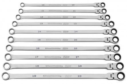 This is 9 mm 11.6 in Solid Steel Combination Ratchet Spanner manufactured by Gear Wrench. The manufacturer part number is 86109. It has an overall length of 11.6 in. A quality product with a nice full polished chrome finish. The product is made from highly stable and reliable solid steel. The product is available in 9 mm size.