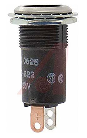 This is 3 W 2 pin Glass Filled Polyester Miniature Bayonet Base Incandescent Neon Lampholder T-2 T-3 1/4 manufactured by VCC. The manufacturer part number is 5100-822. Its lamp is t-2, t-3 1/4 in size . Moreover, the product has a nominal up to 250 v voltage rating. This product carries 3 w. The product is made from highly stable and reliable glass filled polyester. It has a typical thread size of 11/16-27. Furthermore, the product is 20.7 mm wide. Its accurate length is 44.2 mm. It has miniature bayonet base . It is comprised of 2 pins. It has a/an incandescent, neon type supported lamp . It has a panel mount type mount .