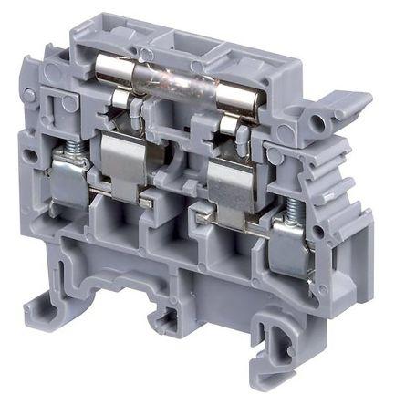 This is Fused DIN Rail Terminal M Series 4 (stranded) mm² 6 (solid) mm² 400 V 6.3A 5 x 20 mm 5 x 25 mm Fuse Grey manufactured by ABB. The manufacturer part number is 1SNA115667R2700 - M4/8 SFLT. The product has a current rating of 6.3a. Moreover, the product has a nominal 400 v voltage rating. The product m, is a highly preferred choice for users. It has a decent grey colour. A fuse with a 5 x 20 mm, 5 x 25 mm size. It allows screw clamp termination method. Moreover, the product is 8mm. The cross section area of the cable includes 4 (stranded) mm², 6 (solid) mm². Concerning wire's size, it is 12 awg, 14 (with ferrule) awg. It has a maximum operating temperature of +110°c. It has 1 connectors .