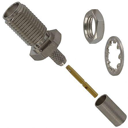 This is Straight 50Ω Cable Mount Bulkhead Fitting SMA Connector Crimp Termination manufactured by Cinch Connectors. The manufacturer part number is 142-0303-416. While providing normal polarity. The product is made from sturdy beryllium copper materials. It is a type of quick connect mating. The product is available in cable mount configuration. In addition, female is the available "Gender" of the product. It has straight body orientation. It is a typical hpf-100, lmr100, rf-100, rg16, rg161, rg174, rg188, rg316 cable. It allows crimp termination method. It has a bulkhead yes . The high-quality gold is used as contact plating material. The product sma, is a highly preferred choice for users. Furthermore, the product has 0 → 12.4ghz operating frequency range. It has an impedance value of 50ω. It carries [Serial Number] serial number. The body is nickel plated for adorable look and strength.