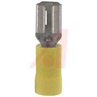 This is Terminal; 12 to 10 AWG; Brass; Vinyl; Tin Plated; 0.250 in. (Max.); UL 94V-2 manufactured by Thomas & Betts. The manufacturer part number is 10RC-250F.