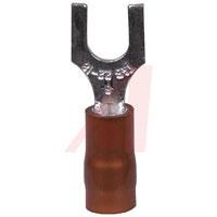 This is Terminal; Fork; 22 to 16 AWG; 0.136 in. (Max.); Copper; Tin; Nylon; #8; Fork manufactured by Thomas & Betts. The manufacturer part number is RA18-8F.
