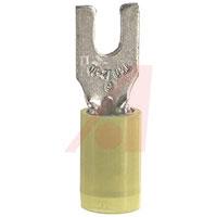 This is Terminal; Fork; 12 to 10 AWG; 0.210 in. (Max.); Copper; Tin; Nylon; #6; Fork manufactured by Thomas & Betts. The manufacturer part number is RC10-6FL.