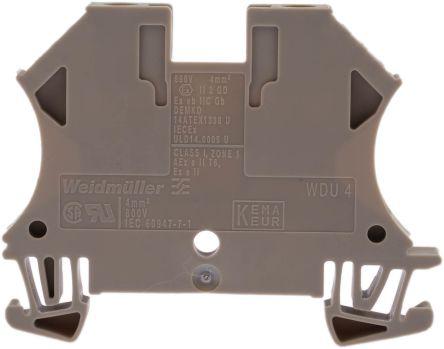 This is ATEX WDU Series 800 V Feed Through Terminal Block Screw Down Termination manufactured by Weidmuller. The manufacturer part number is WDU 4 -1020100000. The product carries single levels. The product has a current rating of 32a. Moreover, the product has a nominal 800 v voltage rating. The product wdu, is a highly preferred choice for users. It has a decent beige colour. The product is certified with atex hazardous area certification. Whereas, the minimum operating temperature of the product is -50°c. It allows screw down termination method. The cross section area of the cable includes 4mm². Concerning wire's size, it is 26 → 10 awg. It has a maximum operating temperature of +120°c.
