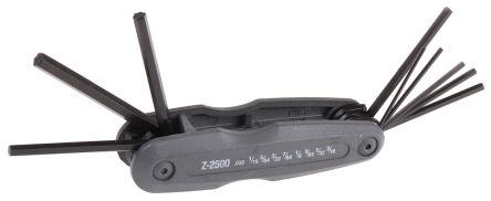 This is 9 piece Folding Hex Key Set manufactured by Allen. The manufacturer part number is 56346. This is a type of z fold ups, a set with user-desired tools. Moreover, it has 0.05; 1/16; 5/64; 3/32; 7/64; 1/8; 9/64; 5/32; 3/16 in set contents . The product consists of 9 pieces.
