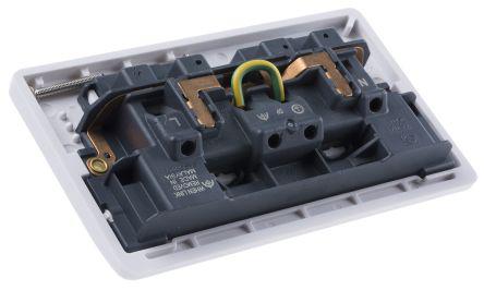 This is white 2 Gang Urea Formaldehyde Switched Power Socket Type G - British 13A Flush Mount IP2XD manufactured by MK. The manufacturer part number is K1246 WHI. It is tailored with a/an white colour family . The product has a current rating of 13a. Moreover, it has a/an out board rocker style switch . Moreover, it has a minimum 25mm box depth . It has a screwedtype faceplate mounting . A quality product with a nice semi gloss finish. The product is made from highly stable and reliable urea formaldehyde. Its faceplate depth is approximately 7mm . It is comprised of 2 modules. It has a bs standard fixing . Moreover, the product has a nominal 230v ac voltage rating. It has a decent mk white colour. Its international protection rating is ip2xd . Moreover, it has 86mm of overall height. It is typically switched yes . The product logic plus, is a highly preferred choice for users. It has an overall width of 146mm. It comprises 2 gangs. The terminal is a captive screw type. The product is available in flush mount style. It includes an earth terminal yes . It has equipped with 2 poles. The type g - british socket offers profound benefits and is well-designed.
