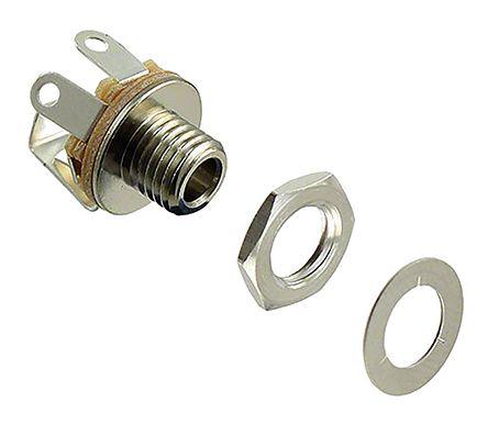 This is 35PM Series Chassis Mount Open Frame Jack 3 - 48 V dc 250mA manufactured by Switchcraft. The manufacturer part number is 35PM2A. The product has a current rating of 250ma. The product is available in chassis mount configuration. Moreover, the product has a nominal 48 v dc voltage rating. In addition, female is the available "Gender" of the product. It has straight body orientation. It allows solder termination method. It has about -, 3 number of poles/ways . The high-quality nickel is used as contact plating material. The product 35pm, is a highly preferred choice for users. It comes in open frame jack configuration. The product is made from sturdy copper alloy materials.