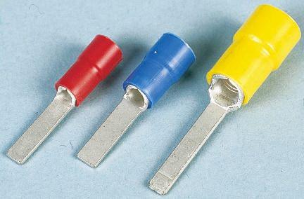 This is FV Series Insulated Crimp Blade Terminal 14.5mm Blade Length 0.25mm² to 1.65mm² 22AWG to 16AWG Red manufactured by JST. The manufacturer part number is FVWS1.25-BL2(LF). It is supplied as unshrouded. Its blade is 3mm in width . It is offered with a standard blade thickness about 0.8mm . In addition, male is the available "Gender" of the product. It has a decent red colour. The inner diameter of the product is 4mm. While the minimum wire size AWG includes 22awg. It has an overall length of 23.5mm. The blade has a length of 14.5mm. It has a robust vinyl insulation material. The product fv, is a highly preferred choice for users. Insulation Option: insulated. Its maximum wires size includes 16awg. On the other hand, the wire has 0.25mm² of minimum size. The wire has a maximum size of 1.65mm².
