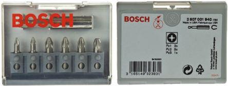 This is 7 pieces Driver Bit Pozidriv Driver Bit PZ1 PZ2 PZ3 manufactured by Bosch. The manufacturer part number is 2607001940. The product consists of 7 pieces. It has a pozidriv head and is ideal choice for a variety of demanding applications. It comes in driver bit configuration. The product is available in pz1, pz2, pz3 size.