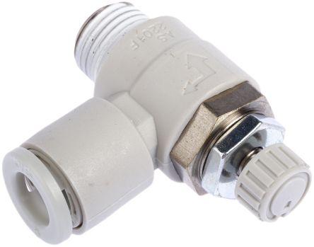 This is AS Series Speed Controller NPT 1/8 Inlet Port x 6mm Tube Outlet Port manufactured by SMC. The manufacturer part number is AS2201F-N01-06SA. It has a maximum 1 (operating) mpa, 1.5 (proof) mpa outlet pressure . The product has a threaded inlet of 1/8 thread size . Moreover, it has a standard tube outlet port about 6mm . It comes in exhaust configuration. The product has a minimum 0.1mpa outlet pressure . It has a threaded type inlet port . It has a threaded inlet of npt thread standard . The product has a as manufacturer series. It has a/an npt 1/8 threaded inlet port . It is designed with a tube type outlet port .