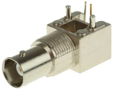 This is Right Angle 50Ω Through Hole BNC Connector jack Nickel Solder Termination manufactured by TE Connectivity. The manufacturer part number is 6-1337521-0. The body is nickel plated for adorable look and strength. The product is available in pcb mount configuration. In addition, female is the available "Gender" of the product. It has right angle body orientation. It has a bulkhead yes . The high-quality gold is used as contact plating material. It allows through hole termination method. Furthermore, the product has 0 → 2ghz operating frequency range. It has an impedance value of 50ω. It has a maximum operating temperature of +85°c. The product is made from sturdy brass materials.
