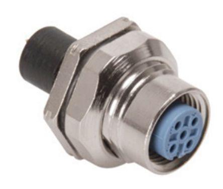 This is WFS Series 6 Pole Right Angle PCB Mount Connector Socket IP68 Male Contacts Threaded Mating manufactured by Turck. The manufacturer part number is WFS 6-PCB. The product has a current rating of 1.5a. It is a type of threaded mating. The product is available in pcb mount configuration. It is IP rated with ip68. In addition, female is the available "Gender" of the product. It has right angle body orientation. Moreover, the product has a nominal 30 v ac, 36 v dc voltage rating. This male contact is widely suited for specific applications. It allows solder termination method. The product also features robust brass housing material. The high-quality gold is used as contact plating material. The product wfs, is a highly preferred choice for users. The product contains 6 contacts. It has a maximum operating temperature of +80°c. Whereas, the minimum operating temperature of the product is -40°c. The product is made from sturdy brass materials.
