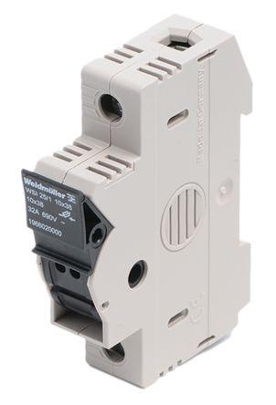 This is Fused DIN Rail Terminal W Series 690 V 32A 10 x 38mm Fuse Beige Single manufactured by Weidmuller. The manufacturer part number is WSI 25/1 10x38 -1966020000. It has ts35 rail type compatibility . The product carries single levels. The product has a current rating of 32a. Moreover, the product has a nominal 690 v voltage rating. The product w, is a highly preferred choice for users. It has a decent beige colour. A fuse with a 10 x 38mm size. It allows screw down termination method. Whereas, the minimum operating temperature of the product is -50°c. Moreover, the product is 18mm. Concerning wire's size, it is 14 → 3 awg. It has a maximum operating temperature of +120°c. It has 2 connectors .