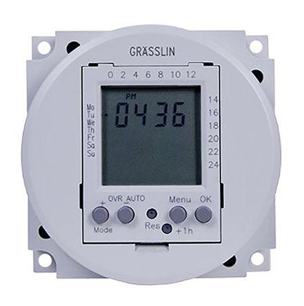 This is 1 Channel Panel Mount Timer Surface Mount Timer Switch 240 V ac SPDT manufactured by Grasslin. The manufacturer part number is FM1D20-240U. In addition, the height is 60.1mm. The product comes in 60.1mm depth. Its battery life is about 8yr . It is supplied with 1 channels. Features 240 v ac supply voltage. It includes 20 memory spaces . The contact is equipped with spdt configuration. It comes in panel mount timer configuration. The terminal is a quick connect type.