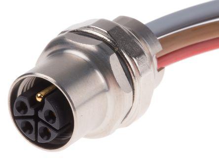 This is 5 Pole Cable Mount M12 Connector Plug manufactured by Brad. The manufacturer part number is 8A5006-315. The product has a current rating of 4a. The product is available in cable mount configuration. It has straight body orientation. It comprises a plug. The product contains 5 contacts. The connector has m12 size.