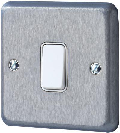 This is Chrome 10 A Plate Flush Light Switch 2 Way Screwed Brushed 1 Gang BS Standard 86mm 1 Albany Plus Screw manufactured by MK. The manufacturer part number is K4671BRC. A quality product with a nice brushed finish. The product has a current rating of 10 a. It has a screwed faceplate fixing . The product albany plus, is a highly preferred choice for users. It has a decent chrome colour. It comprises 1 gangs. In addition, the height is 86mm. Its accurate length is 86 mm. The product is designed with a screw termination. It comprises 2 ways. Quality product with a plate switch type. It is comprised of 1 modules. It has a bs standard standard fixing . It has a flush type mount .