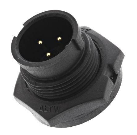 This is BD Series 3 Pole Panel Mount Connector Plug IP67 Male Contacts Bayonet Mating manufactured by Amphenol. The manufacturer part number is BD-03PMMS-LC7001. The product has a current rating of 5a. It is a type of bayonet mating. The product is available in panel mount configuration. It is IP rated with ip67. In addition, male is the available "Gender" of the product. It has straight body orientation. Moreover, the product has a nominal 500 v dc voltage rating. This male contact is widely suited for specific applications. It allows solder termination method. The product also features robust glass fibre reinforced nylon housing material. The connector has standard size. The high-quality gold is used as contact plating material. The product bd, is a highly preferred choice for users. The product contains 3 contacts. It has a maximum operating temperature of +105°c. Whereas, the minimum operating temperature of the product is -40°c. The product is made from sturdy copper alloy materials.