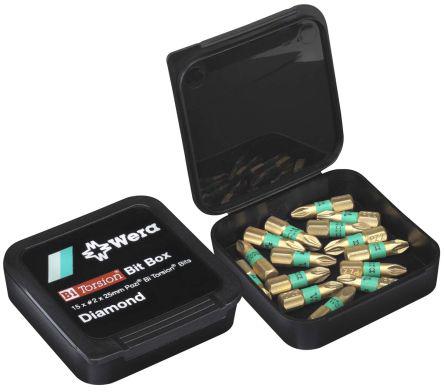 This is 15 pieces Driver Bit Set Pozidriv Driver Bit PZ2 manufactured by Wera. The manufacturer part number is 05347523001. The product consists of 15 pieces. It has a pozidriv head and is ideal choice for a variety of demanding applications. It comes in driver bit set configuration. The product is available in pz2 size.