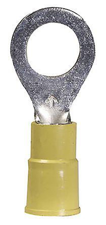 This is MV Series Insulated Tin Plated Crimp Ring Terminal 5/16in Stud Size 12AWG to 10AWG Yellow manufactured by 3M. The manufacturer part number is MV10-516R/SX. While the minimum wire size AWG includes 12awg. The product mv, is a highly preferred choice for users. It has a decent yellow colour. It is unshrouded . It is 0.04in thick. It has a standard 5/16in size stud . In addition, its outlet ring diameter is about 0.53in . Moreover, the inner ring is about 0.135in in diameter . It has a robust vinyl insulation material. The high-quality tin is used as contact plating material. It has an overall length of 1.26in. Insulation Option: insulated. Its maximum wires size includes 10awg. The product is made from sturdy etp copper materials. It carries [Serial Number] serial number.