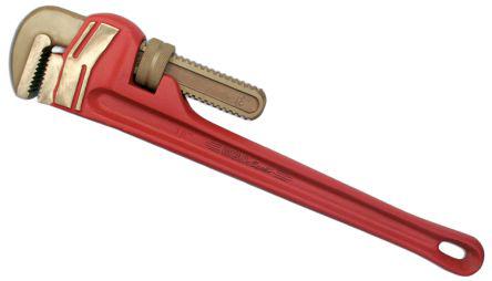 This is Heavy Duty Pipe Wrench 51mm Jaw Capacity Beryllium Copper 355 mm Non Sparking manufactured by Ega-Master. The manufacturer part number is 70124. It has a non sparking nature yes . The product is made from highly stable and reliable beryllium copper. It comes in heavy duty configuration. It has a jaw with 51mm capacity . It has an overall length of 355 mm.