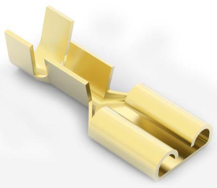 This is FASTON .250 Series Crimp Receptacle 6.35 x 0.81mm 0.8mm² to 2mm² 18AWG to 14AWG manufactured by TE Connectivity. The manufacturer part number is 41202. The wire has a maximum size of 2mm². In addition, female is the available "Gender" of the product. While the minimum wire size AWG includes 18awg. quick disconnect terminal Connector type offer robust functionality. Its accurate length is 19.18mm. Its tab size is about 6.35 x 0.81mm . The product faston .250, is a highly preferred choice for users. Insulation Option: uninsulated. Its maximum wires size includes 14awg. On the other hand, the wire has 0.8mm² of minimum size. The product is made from sturdy brass materials.